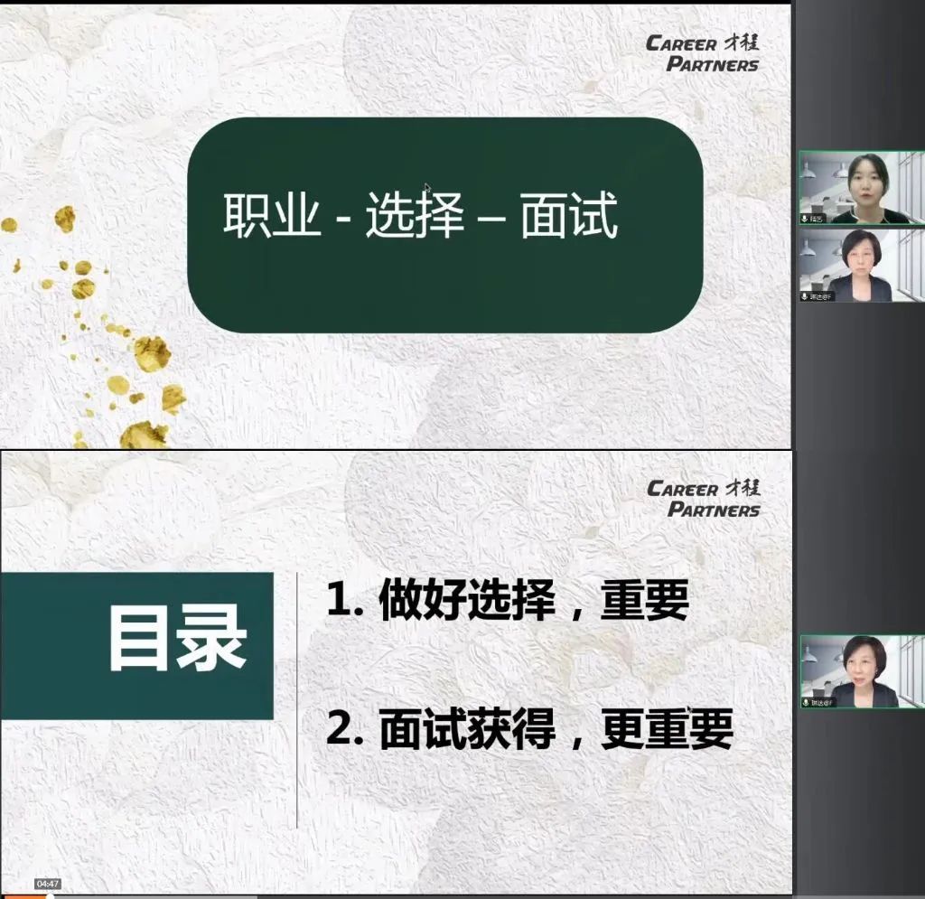 发布时间:2023-12-14 12:01:26.0 浏览次数:“职业选择与求职技能”直播讲座邀请到了“才程咨询”联合创始人、生涯书籍《蜕变》主编及联合作者、上海市大学生面试求职模拟/职业规划大赛连续5年特约评委、拥有20年多家世界500强企业工作经验的亚利桑那州立大学心理学硕士Linda Fang老师。